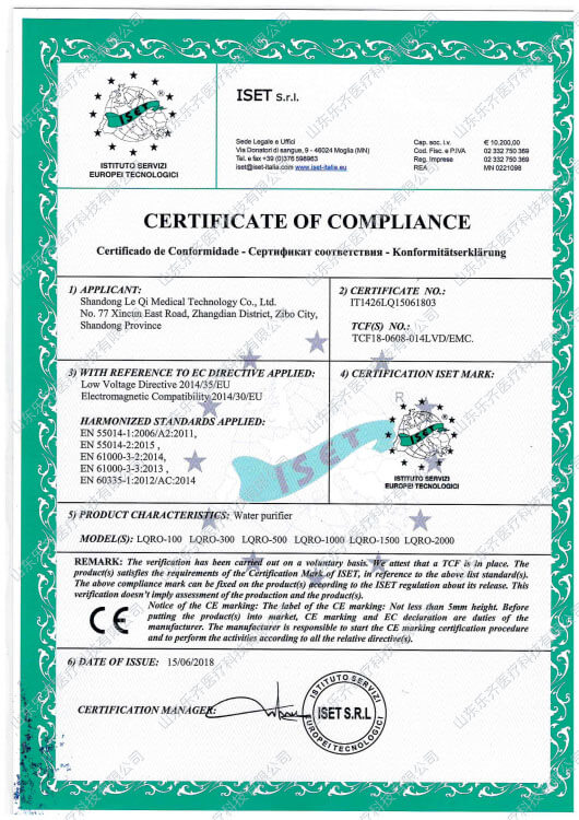 CE證書-純水機