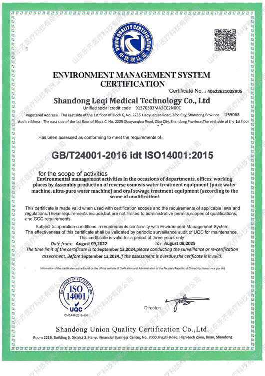 ISO環境管理體系認證證書