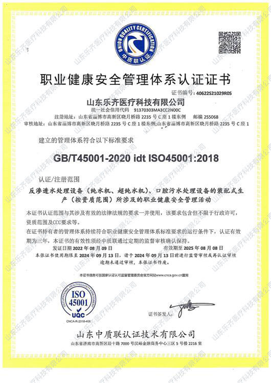 ISO職業健康安全管理體系認證證書