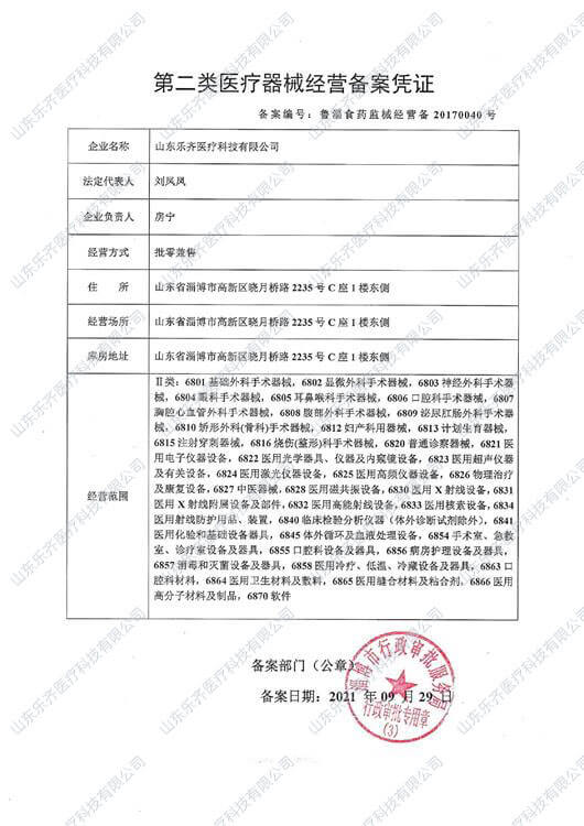 第二類醫療器械經營備案憑證