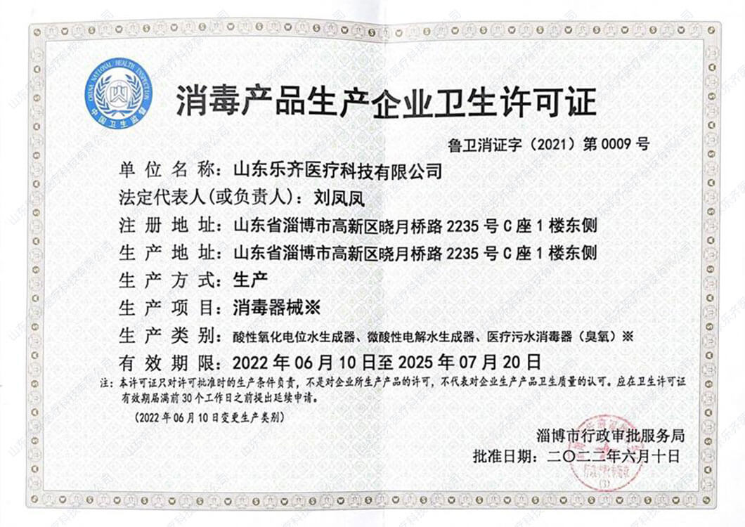 消毒產品生產企業衛生許可證